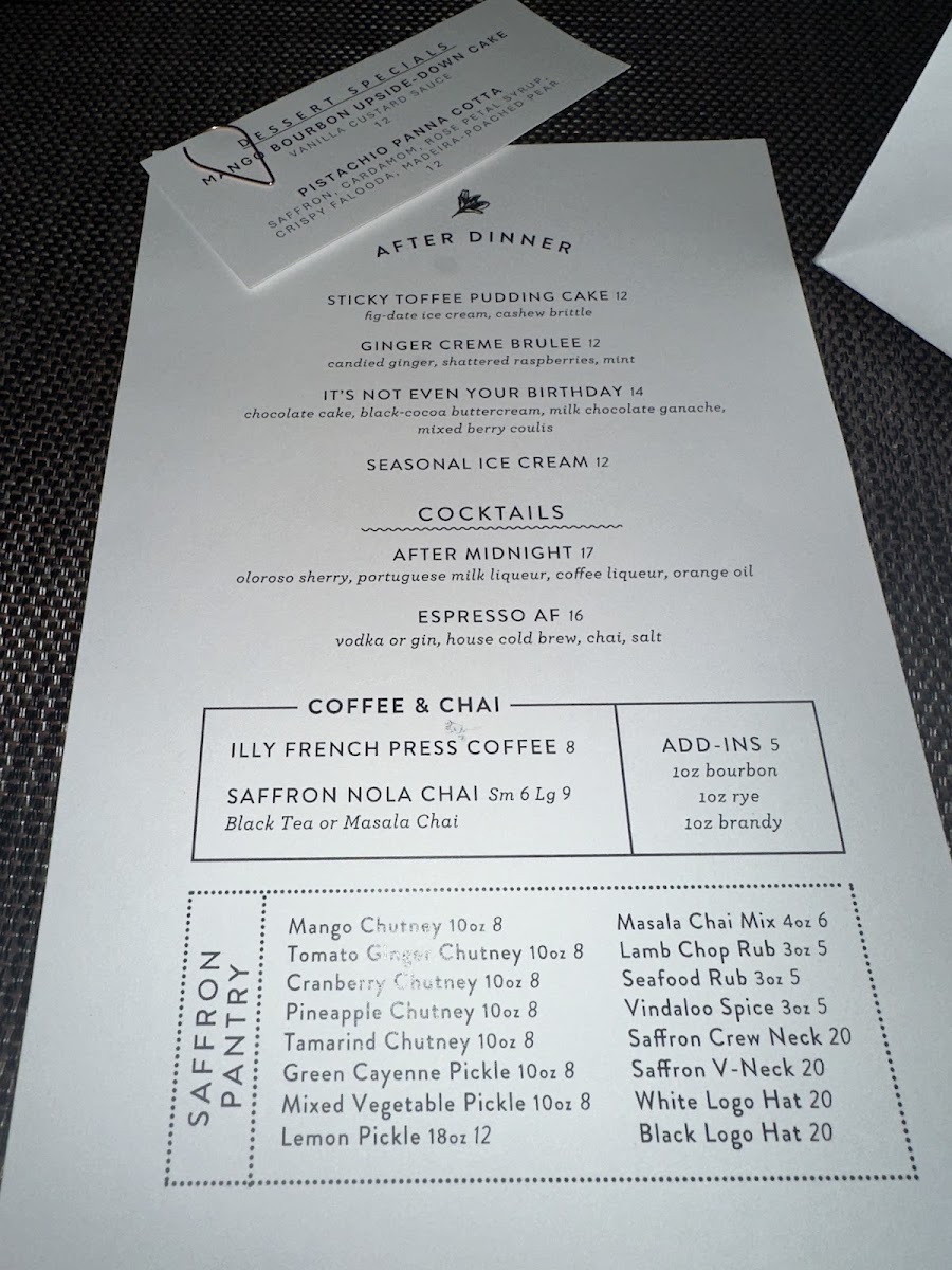 Indian digestif cracker crust, tomato ginger chutney, chai whip, pistachio.